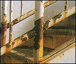 コンクリートは年数を経るとひび割れしやすく雨水が浸入し、強度が落ちます。また内部の鉄筋が錆び、表面のモルタルを押し出し、建物の寿命を著しく縮めます。 |